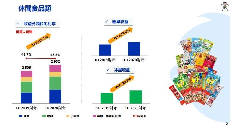 其次为休闲类和米果类,营收分别为29.52亿元和19.92亿元,同比增长17.7%和9.4%。