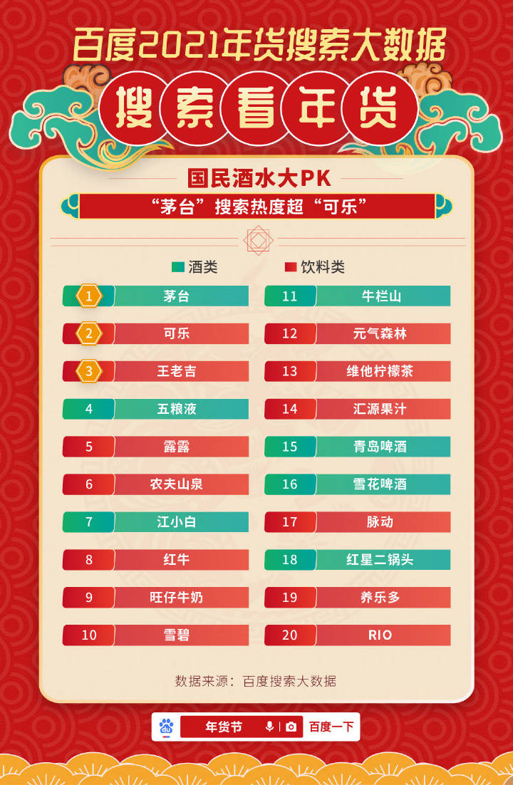 百度2021年货搜索大数据,王老吉位列前三