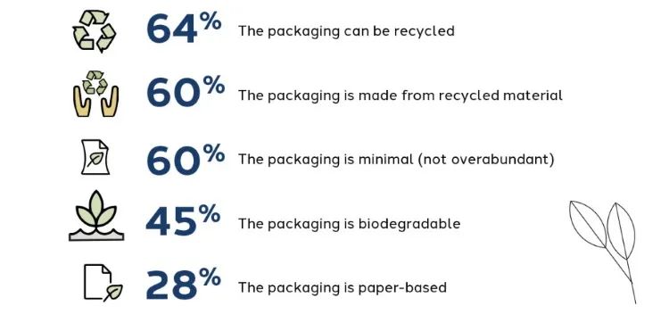 事实上,59%的人表示,他们有意识地选择产品,仅仅是因为其环保包装,如可重复使用、可堆肥、可回收和可食用的包装。